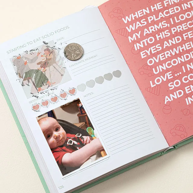 Simply scratch off the foil panels as your baby reaches each milestone. Use the provided space to journal memories, add photos, or include special notes. The book’s interactive design makes documenting your child’s growth fun and engaging.