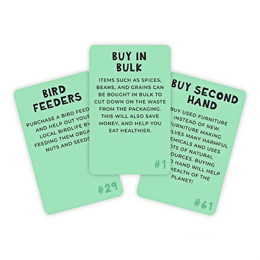 • Pick a card each day or week to focus on a new eco-friendly action