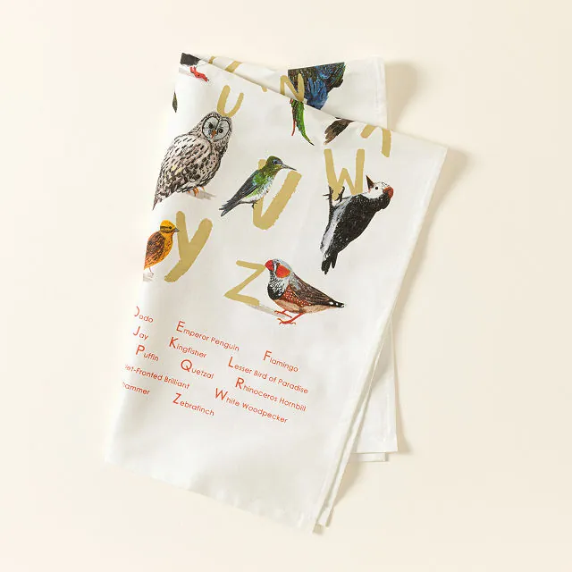 Add Artistic Charm to Your Space with Alphabet in Birds Tea Towel
