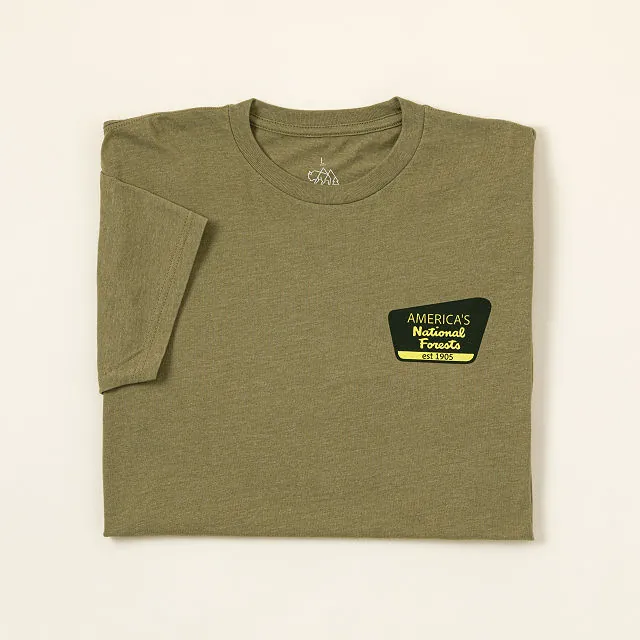 Carry your love for the great outdoors wherever you go with the American National Forests Bucket List T Shirt. Featuring a vintage-inspired chest icon and a full checklist of America’s National Forests on the back, this t-shirt is perfect for adventurers, hikers, and nature enthusiasts alike. Commemorate your love of public lands while honoring 120 years of the National Forest Service in 2025.