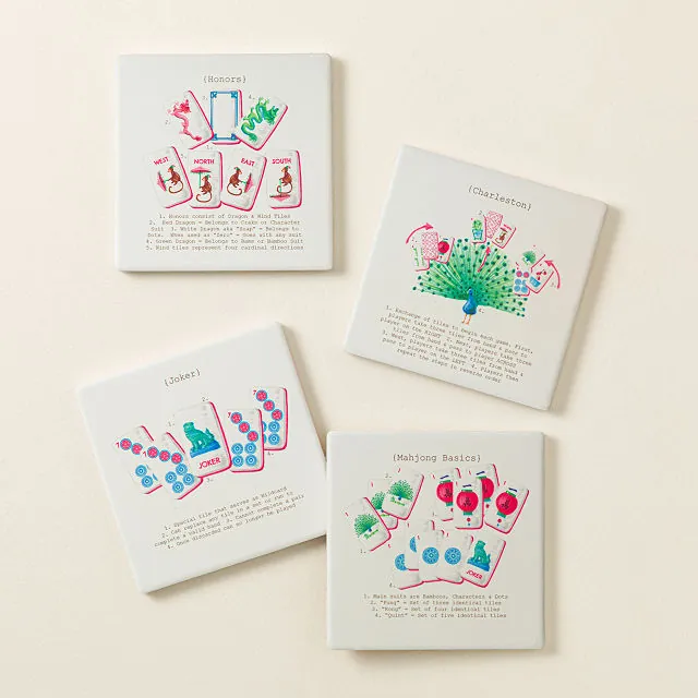 • Set Includes: 4 coasters with different mahjong-themed illustrations
