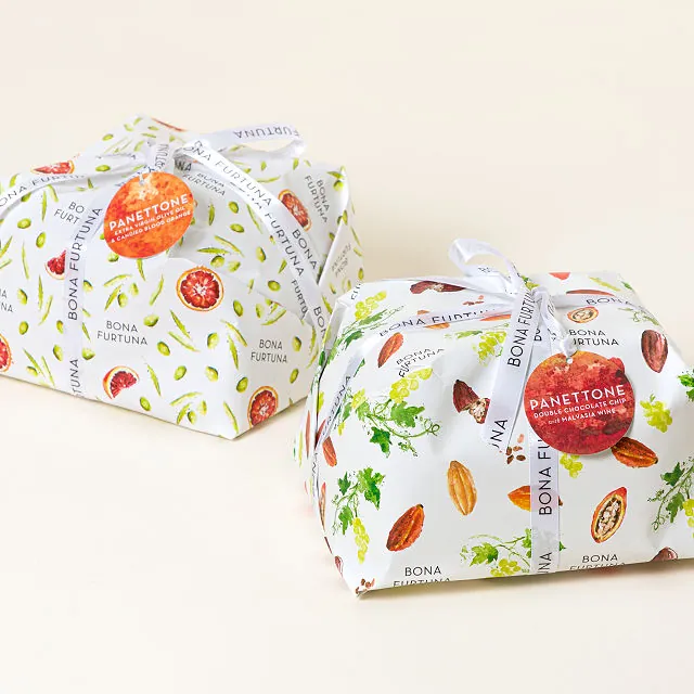 Baked by the skilled pasticceri at Bona Furtuna in Central Sicily, this panettone is slowly fermented for days to achieve a cloudlike texture and unparalleled depth of flavor. With premium Sicilian olive oil, candied blood-orange peel, and options like Double Chocolate & Malvasia, it’s a sophisticated twist on a classic Christmas staple. Each loaf is elegantly wrapped, making it as visually delightful as it is delicious.