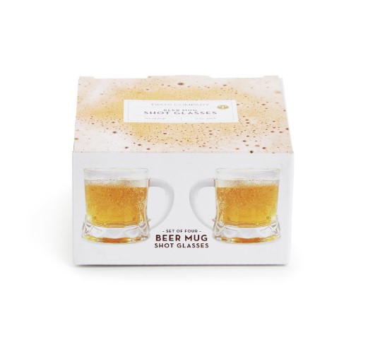 - Type: Beer mug-style shot glasses, set of 4