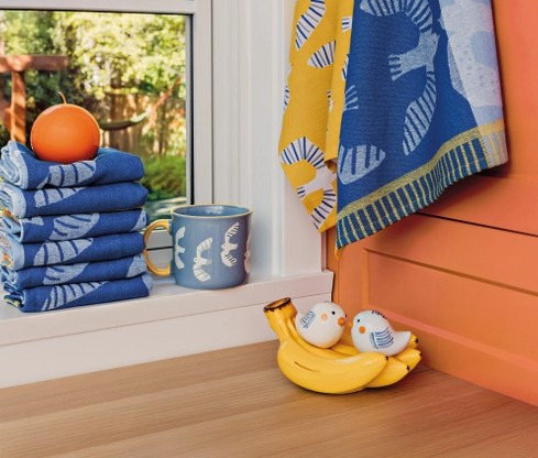 - Charming Design: Features playful birds in a mineral blue and golden yellow color palette.
