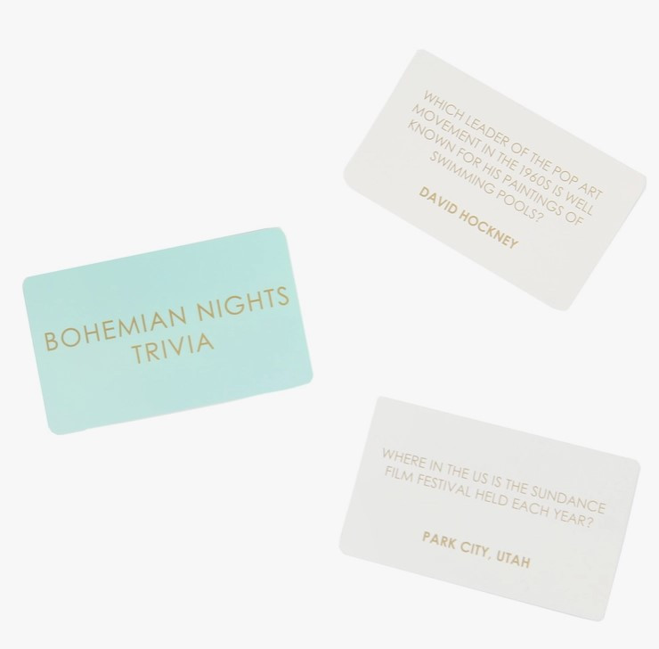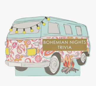 Test your knowledge with Boho Trailer Trivia Game. 80 cards cover travel, culture, art, and music for teens and adults.
