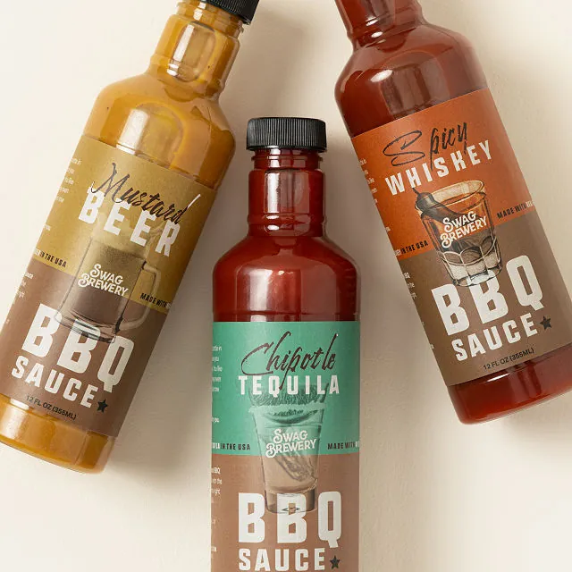 Material & Type: Handcrafted BBQ sauces infused with whiskey, tequila, and beer