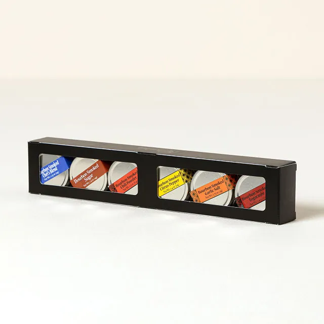 Elevate your culinary creations with the Bourbon Smoked Spices Mini Sampler, a set of six handcrafted spice blends smoked over real bourbon barrels in Kentucky. Each blend delivers unique layers of smoky, oaky, citrusy, or sweet notes, perfect for seasoning, garnishing, or adding a bold twist to your favorite dishes.