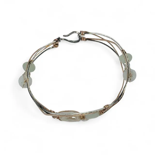 Elevate your jewelry collection with the Braided Moonstone Cuff, a luminous bracelet that captures the magic of the sea and the sky. Hand-braided with sterling silver, bronze, and gold-filled wire, this cuff features moonstone, freshwater pearl, jade, and opal, creating a shimmering, ethereal accessory. Perfect for wandering tidepools, stargazing, or everyday elegance, it brings a touch of nature’s wonder to your wrist.