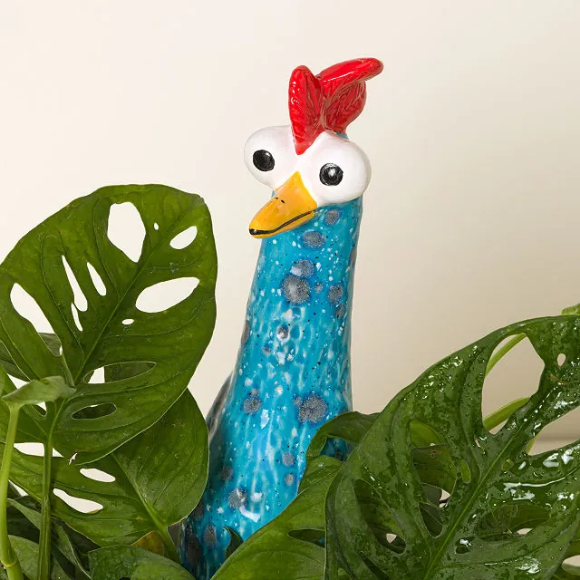 With its vibrant colors and whimsical design, this decorative hen instantly brightens any setting. Whether nestled among plants or displayed on a shelf, it adds personality, warmth, and a playful farmhouse feel to your décor.