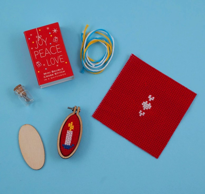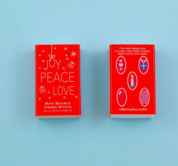 Experience the joy of crafting and decorate your holiday season with this Christmas Bauble Cross Stitch Kit. Each tiny matchbox contains a complete kit with aida cloth, threads, a mini wooden hoop, and a needle—all with easy-to-follow instructions. Create your festive designs anywhere, anytime, and enjoy hours of creative holiday fun.