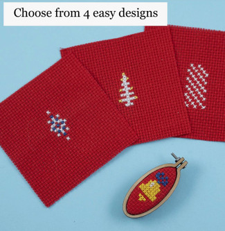 - Includes: 1 mini hoop, threads, needle, instructions, 4 festive designs