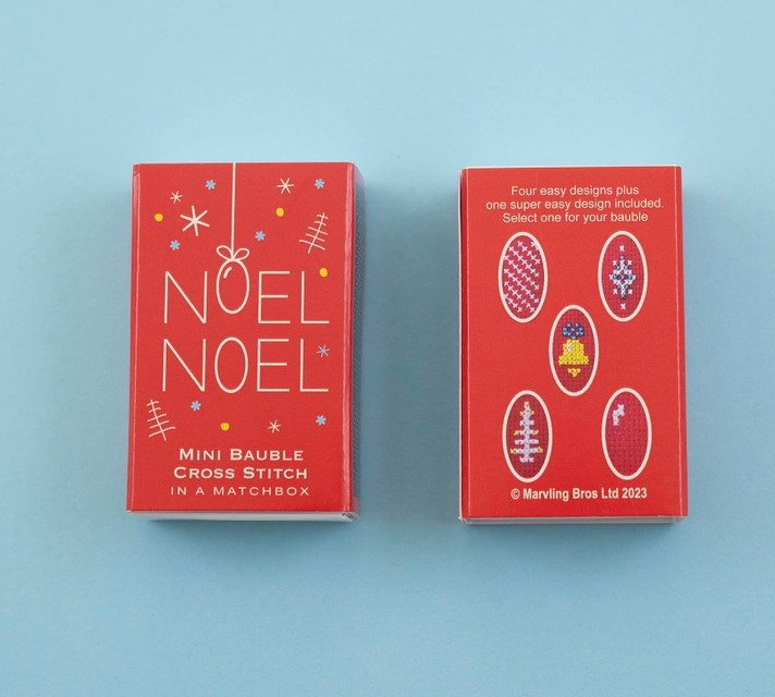 The Christmas Baubles Noel Noel Cross Stitch Kit in a Matchbox includes all the materials you need to complete your festive project. The mini kit provides a focused, relaxing activity that enhances creativity while spreading holiday spirit. It’s compact enough to take anywhere and makes a perfect stocking stuffer for crafters of all ages.
