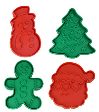 • Set Includes: 4 double-sided cookie cutters/stampers