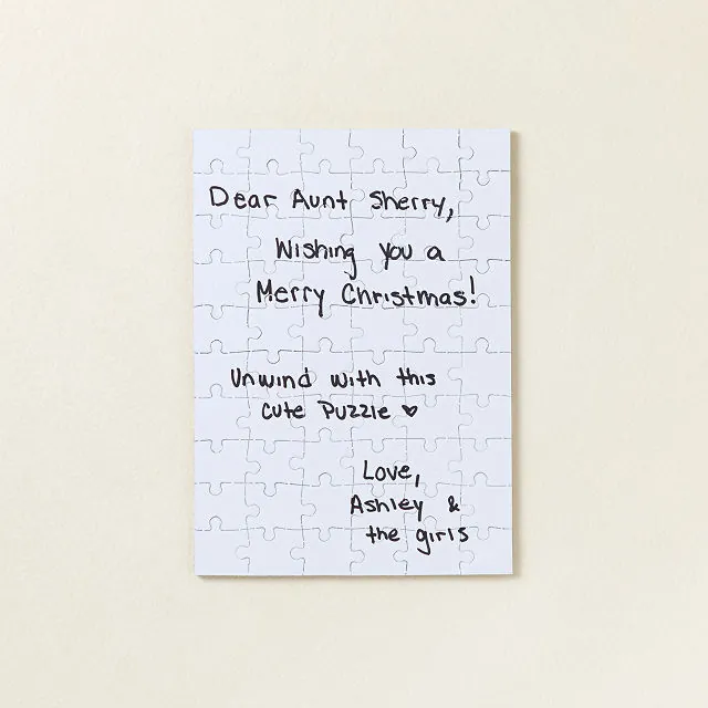 Sending this card is as joyful as receiving it! Simply write your holiday message on the back, place the puzzle pieces into the envelope provided, seal it with the included sticker, and send it off. When your recipient assembles the puzzle, your heartfelt message will appear as the finishing touch to their Christmas surprise.