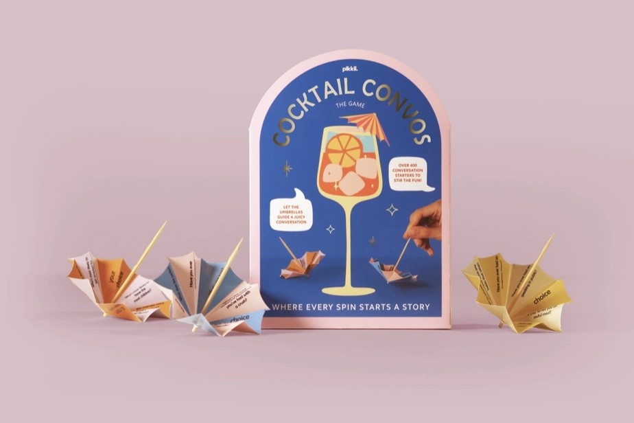 With over 400 conversation starters and 24 cocktail/mocktail recipes, Cocktail Convos encourages fun, meaningful, and sometimes hilarious dialogue. Simply select a category, spin the umbrella, and let the questions guide your conversation. Compact and easy to use, it’s the ultimate icebreaker for parties, get-togethers, or intimate evenings with friends.
