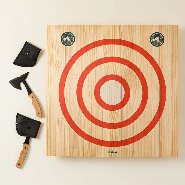 Test your aim with the Complete Axe Throwing Game Set, a portable and thrilling backyard game with steel axes and pinewood target.