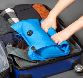 Experience convenience like never before. Simply place your clothing inside, close the pouch, open the air duct, and roll to expel excess air. Lock the air duct to seal your items, keeping clothes neatly compacted and wrinkle-free. Perfect for backpacks, carry-ons, or full-sized suitcases, this pouch ensures efficient packing every time.