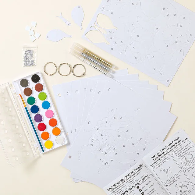 The Create Your Own 3D Tunnel Book Kit invites children to explore underwater or woodland worlds through their own creations. Each kit combines stationery, model-making, and pop-up book fun, allowing kids to color, assemble, and articulate 12 unique characters with included mini brads—no glue or scissors needed. Screen-free and hands-on, this activity encourages storytelling, creativity, and STEAM learning.
