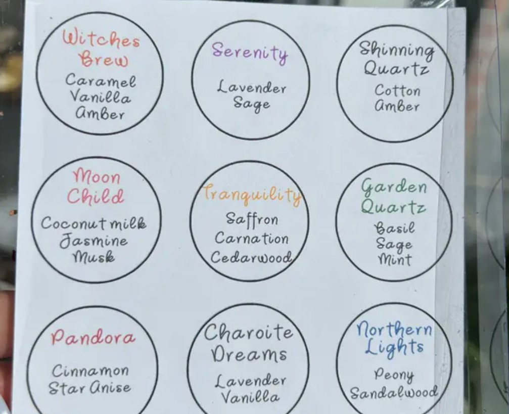 The scents are crafted from premium fragrance oils blended into 100% soy wax.