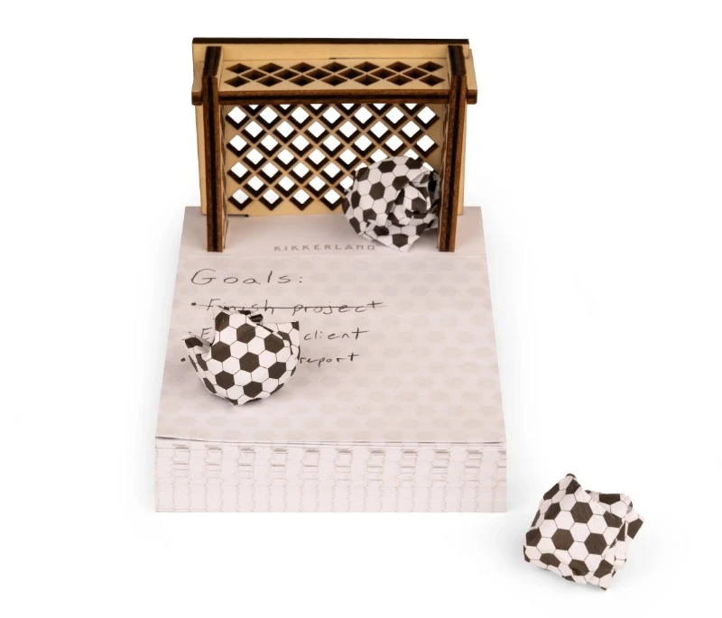 The Desktop Goals Sticky Notes combine functionality with fun by turning your notes into mini soccer balls. With 200 sticky notes included, you can write your reminders, crumple them up, and aim for the mini plywood goal—making even the busiest workday more enjoyable.