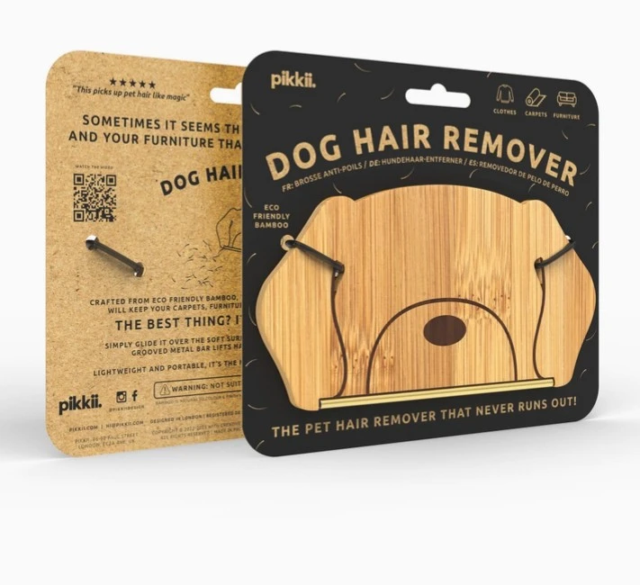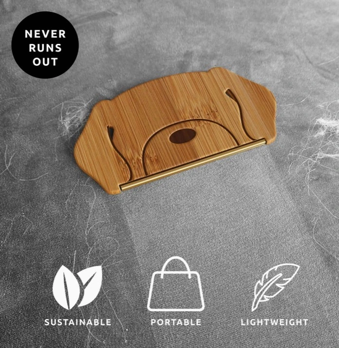 Dog Hair Remover is an eco-friendly reusable bamboo tool that removes pet hair and lint from clothes, furniture and carpets easily.