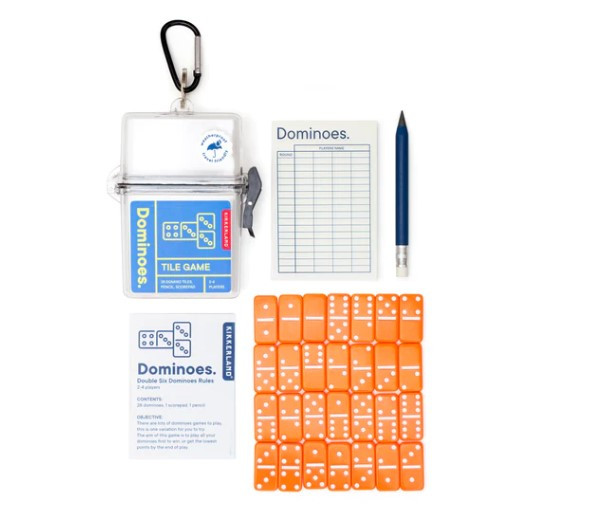 Play anywhere with Dominoes Tile Game to Go, featuring 28 tiles, waterproof case, score pad, and portable design for on-the-go fun.