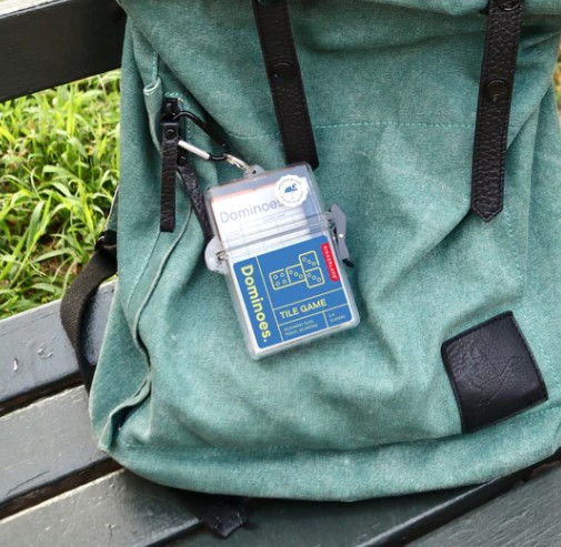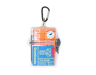 Designed for convenience and durability, the Dominoes Tile Game to Go includes 28 vibrant orange tiles, a score pad, pencil, and complete game instructions. The waterproof, lockable acrylic case with IPX5 rating keeps your tiles protected from the elements. A handy carabiner clip allows you to attach the game to your backpack, making it a must-have companion for outdoor adventures or travel.