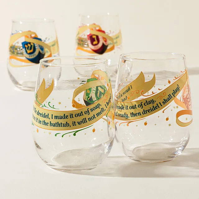 Use the glasses to toast during Hanukkah celebrations, enjoy a favorite beverage, or create your own friendly dreidel drinking game. Each glass features a unique dreidel side, allowing for playful spins and fun storytelling throughout the holiday.