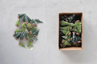 Frosted Mini Green Sisal Trees, Boxed Set of 24