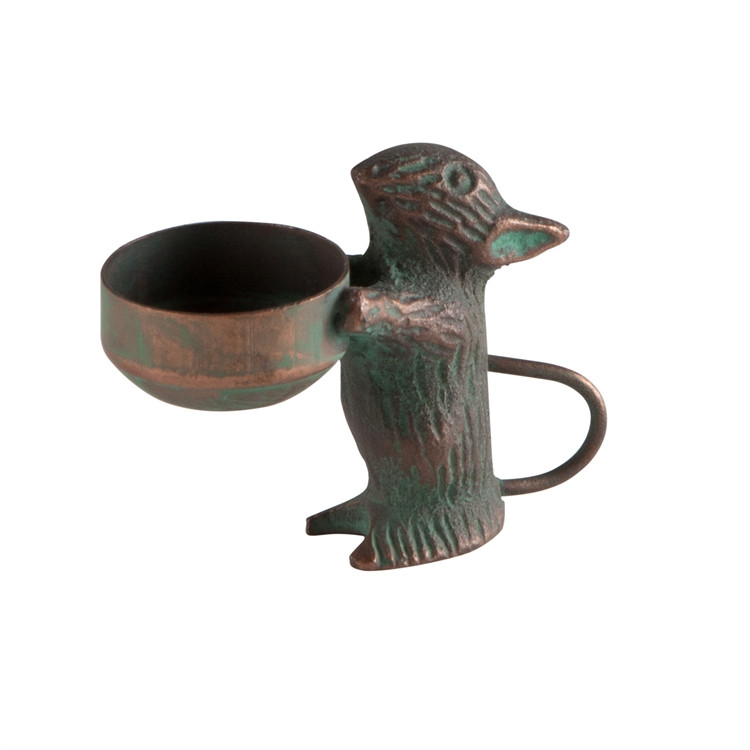 The Garden Mouse Tealight Holder With Copper Patina Finish blends artistic craftsmanship with practical lighting. Its durable cast iron construction ensures long-lasting use, while its antique-style finish adds timeless charm. Designed to hold a standard tealight candle, it can also be used outdoors with citronella candles to gently enhance your patio atmosphere while helping keep insects away.