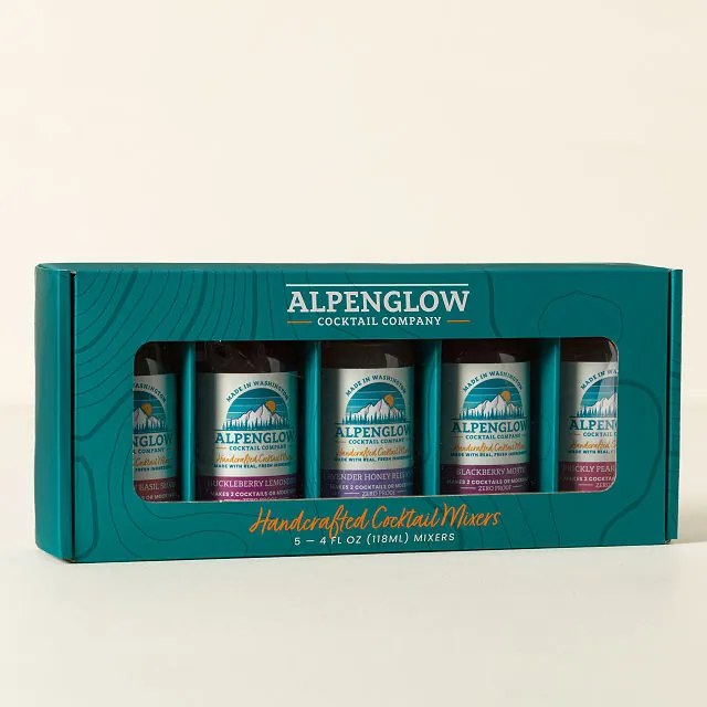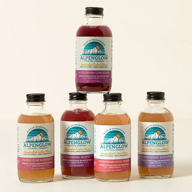 • Includes: 5 cocktail mixers (Huckleberry Lemonade, Prickly Pear Margarita, Blackberry Mojito, Strawberry Basil Smash, Lavender Honey Bees Knees)