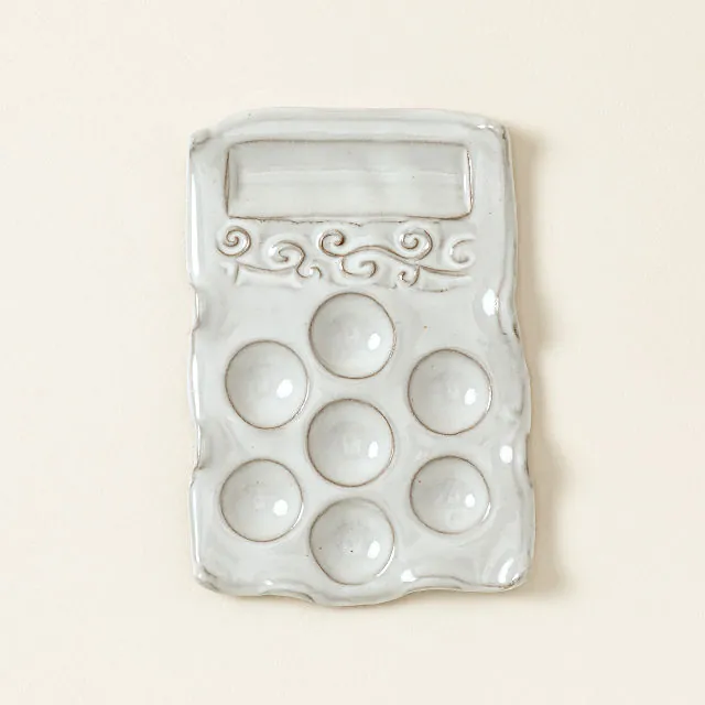 With seven circular paint wells and elegant side scalloping to rest your brushes, this palette is as functional as it is beautiful. Handmade in Melbourne, Florida by Leslie Wiedenhoeft, each piece is unique, reflecting care, craftsmanship, and a love for the art-making process. Dishwasher safe and thoughtfully designed, it’s ideal for artists of all levels seeking both practicality and inspiration.