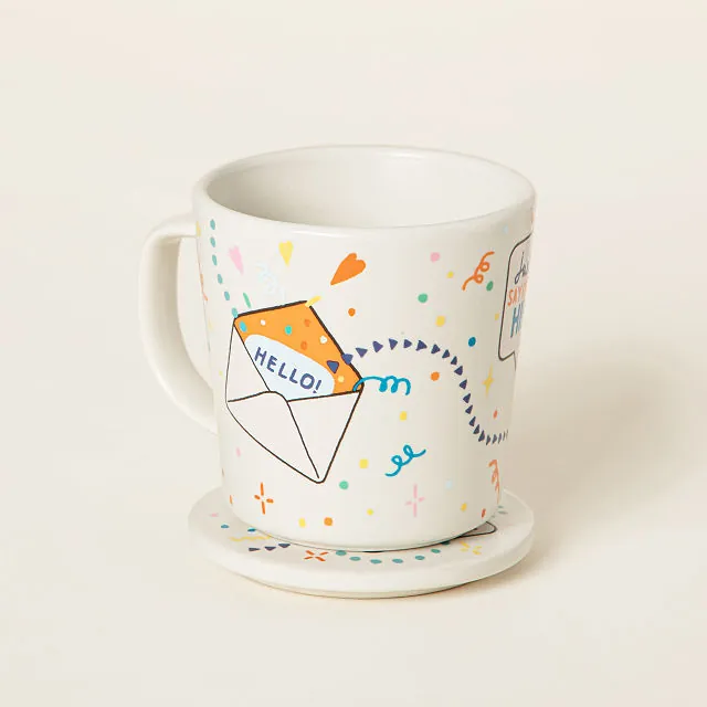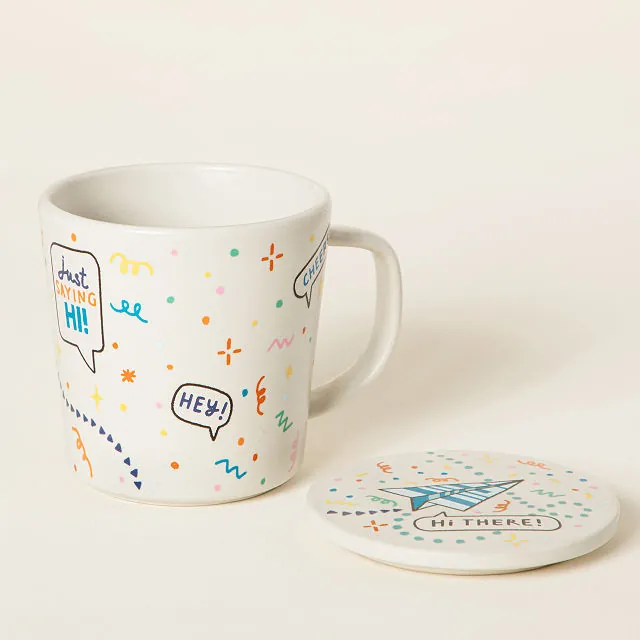 Start your day with a smile and a splash of color. The Hi There! Mug transforms an ordinary coffee break into a warm, joy-filled moment. Designed with playful confetti patterns and friendly greetings like “Hello!” or “Cheers!”, this charming mug is the perfect companion for your morning ritual—or a thoughtful gift for someone special.