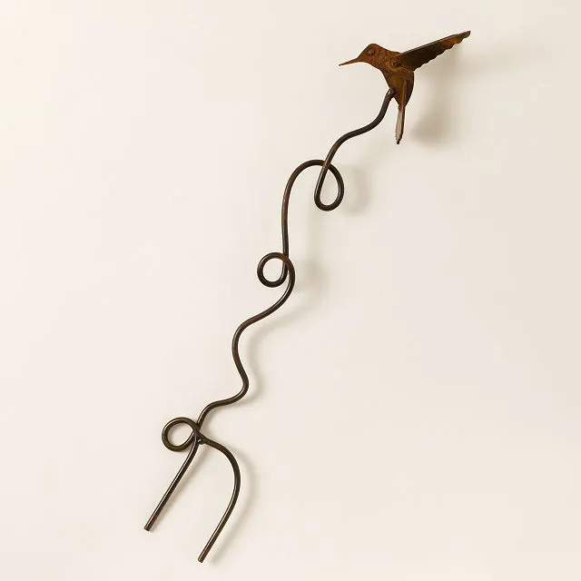 Support and decorate your plants with the Hummingbird Climbing Stake, handcrafted steel with a charming hummingbird motif.