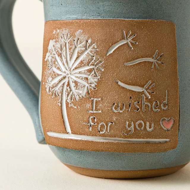 Enjoy every sip with the I Wished For You Mug, handcrafted stoneware with a dandelion design, perfect for gifts and daily use.