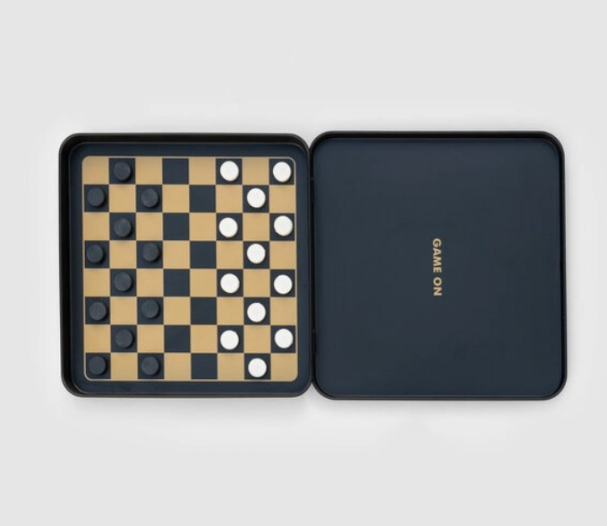Play Anywhere with Iron & Glory Game On Travel Checkers Tin