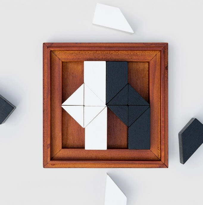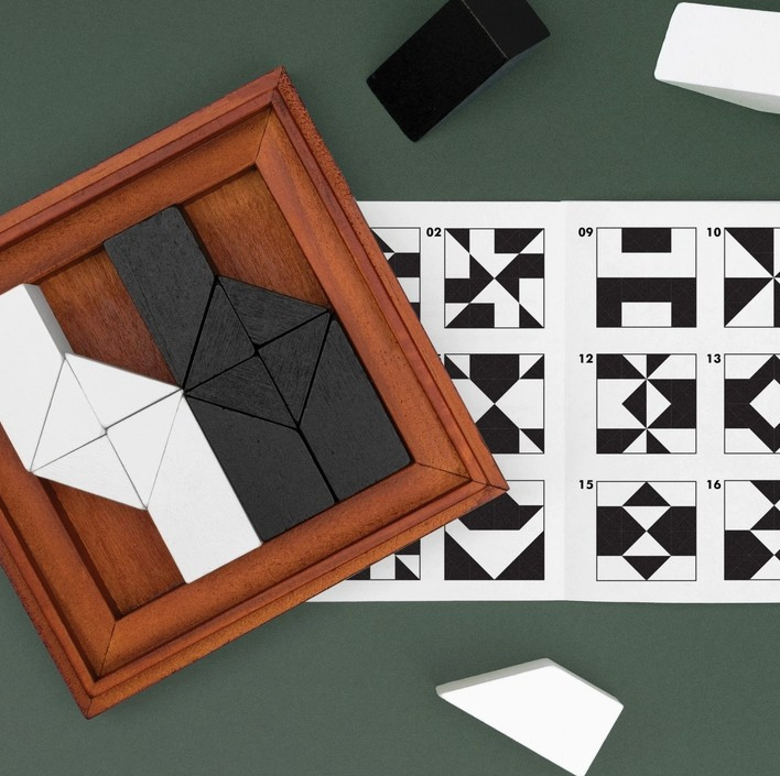 - Included: 16 wooden pieces, instruction guide, challenge and solution cards