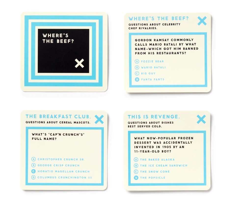 Whether you’re a foodie or just love random facts, this trivia set challenges your memory and curiosity. Players select questions from playful categories like “Hunger Games” and discover hilarious and unexpected food trivia that sparks conversation and competition. Ideal for 2–8+ players, it’s the ultimate party starter for all ages.