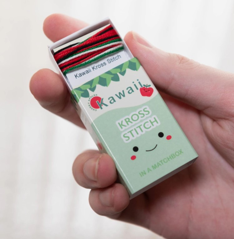 Create a cute Kawaii Apple Mini Cross Stitch Matchbox with everything included for a fun, portable DIY crafting project.