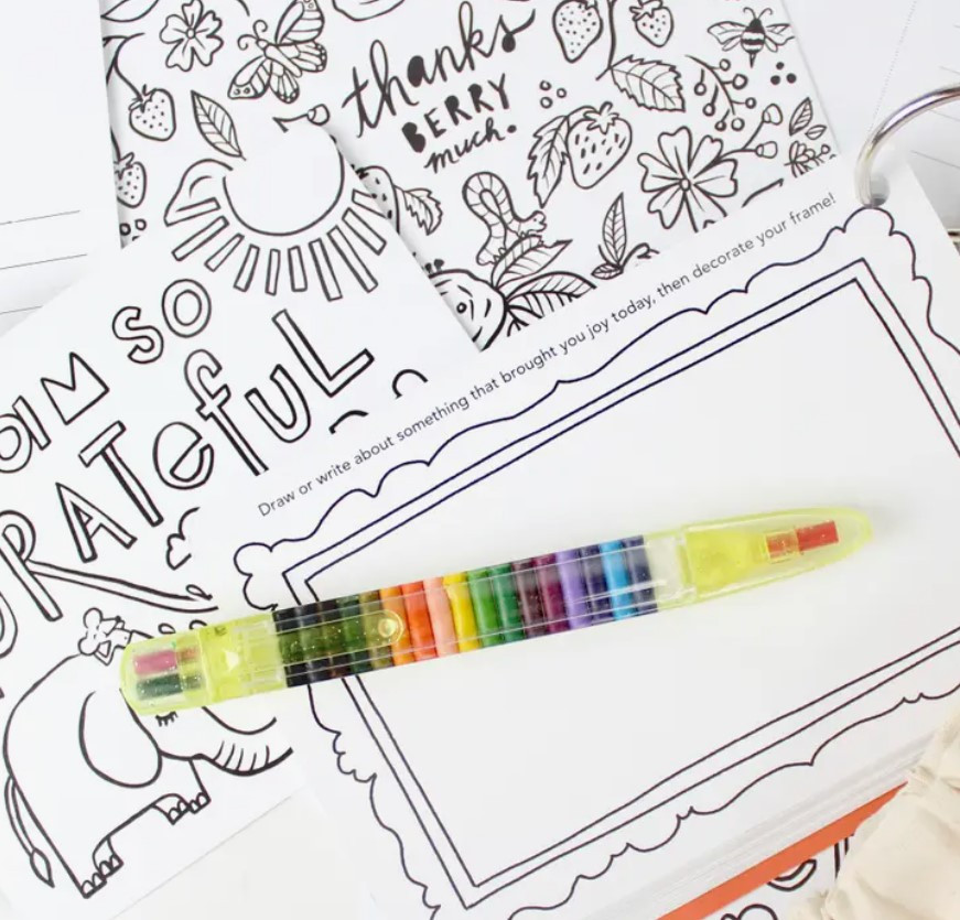 More than just a journal, the Kid’s Gratitude Kit offers an interactive experience that blends reflection, creativity, and connection. With snap-open ringed cards, kids can easily write their thoughts on one side and illustrate them on the other, making each entry personal and expressive.
