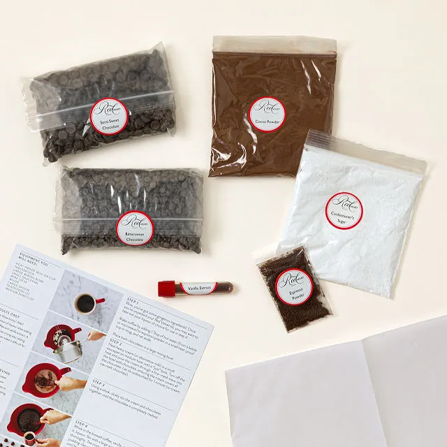 • Materials: Bittersweet chocolate, semi-sweet chocolate, heavy cream, confectioner’s sugar, cocoa powder, vanilla extract, espresso powder