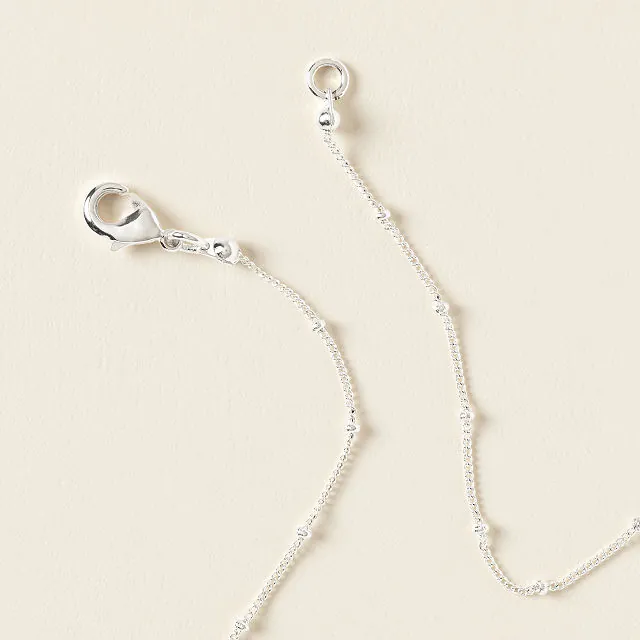 • Chain Length: 18″ silver-plated satellite chain with lobster clasp