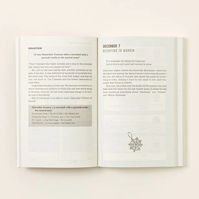 It contains 25 holiday-themed murder-mystery logic puzzles.