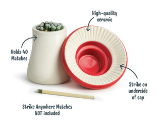 Simply place Strike Anywhere matches inside the holder (matches not included). Strike on the underside of the mushroom cap to light candles safely and efficiently. Perfect for everyday use or special occasions.