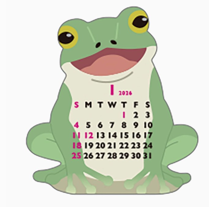 - Product Name: Mini Die-Cut Frog Calendar – 2026