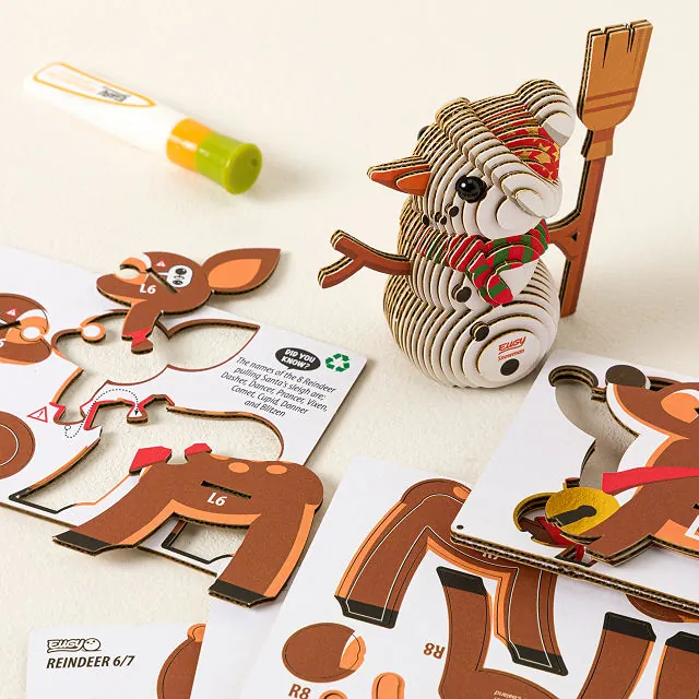 The Mini Holiday Friends 3D Kit combines creativity, sustainability, and holiday spirit. Made from recycled, biodegradable cardboard and eco-friendly inks, each kit provides a simple assembly process that encourages focus, patience, and imaginative play. With a bit of glue and some layering, kids can bring their holiday companions to life in just about 30 minutes each.