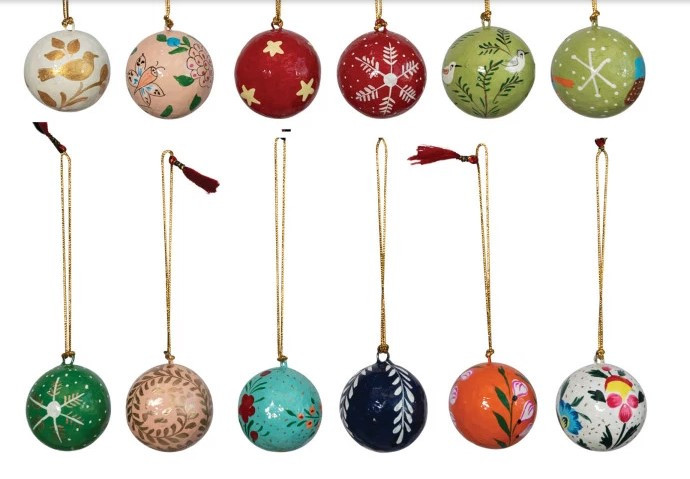 Mini Paper Mache Ball Ornaments, Set of 12