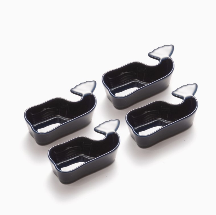 Nantucket Whale Condiment Cups, Set of 4 – ceramic, playful design perfect for sauces, dips, and seafood nights.