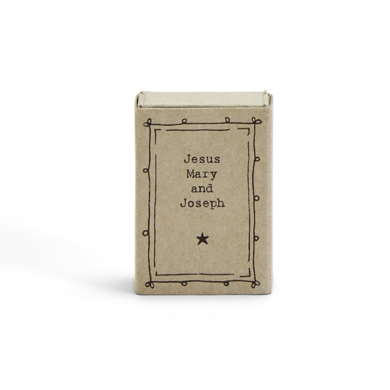 Nativity Matchbox features a mini porcelain set of Mary, Joseph, and Jesus, perfect for Christmas décor or meaningful keepsake gifts.
