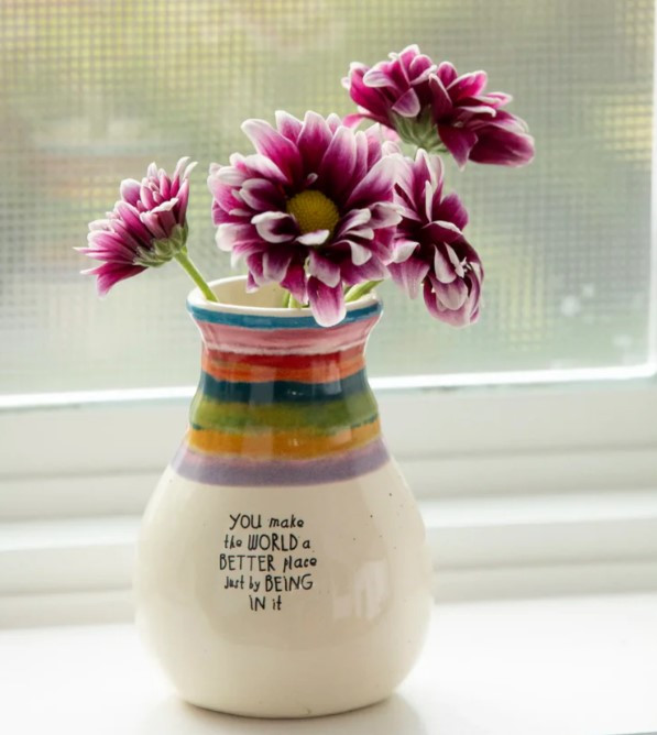 The Natural Life Bud Vase – You Make the World a Better Place is a beautifully crafted piece designed to inspire joy and positivity in everyday life. With its heartfelt message and charming design, this ceramic vase transforms even the simplest flower into a meaningful gift.